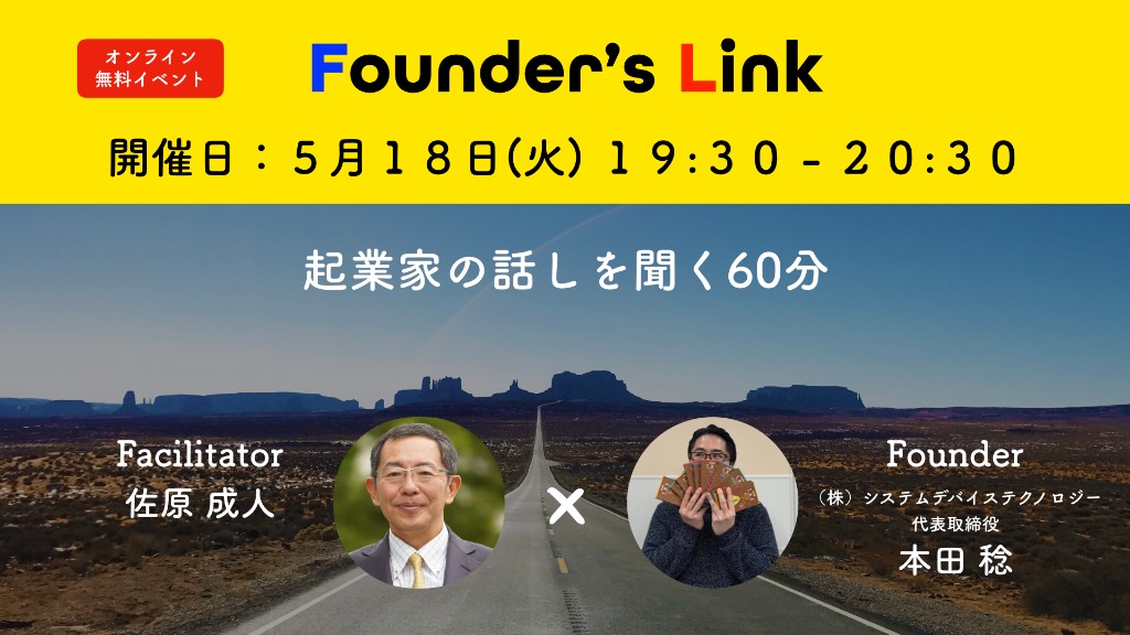 『Founder’s Link』第1回のゲストは、「注目の西日本ベンチャー100(ベンチャー通信)」にも2年連続で選出されている大阪市西区(株)システムデバイステクノロジー代表取締役 の本田 稔(ほんだ みのる)さんです。 https://sdt.jimdosite.com/